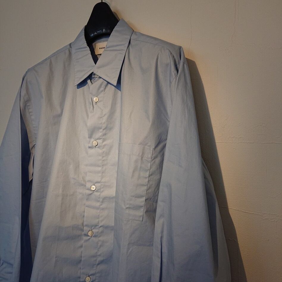 バックヨークは動き易さを考慮したセンターボックスプリーツ仕様、着用した際のシルエットは肩周りや身幅、袖周りにたっぷりとゆとりを持たせる事で、全体的に丸みのあるシルエットに。リラックスした着心地ながら、見た目にも上品で上質なMARKAWAREらしい一枚。