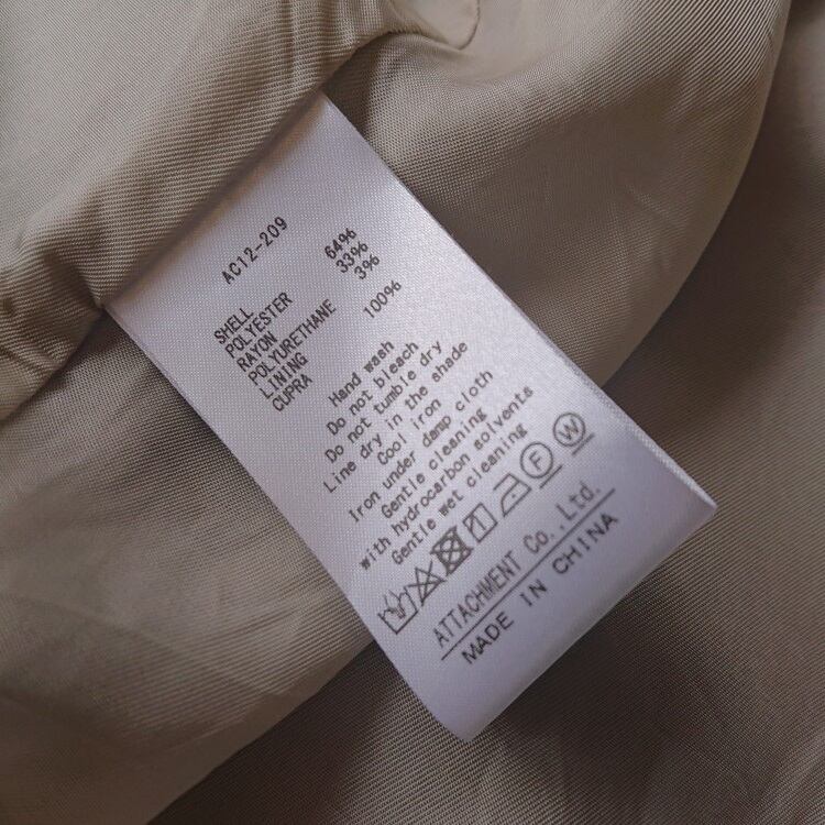 フロントは比翼仕立てのファスナー仕様。両サイドにシームポケット付きでATTACHMENTらしいミニマルなデザインに仕上がっております。秋や春ごろはカットソーの上に軽く羽織り、